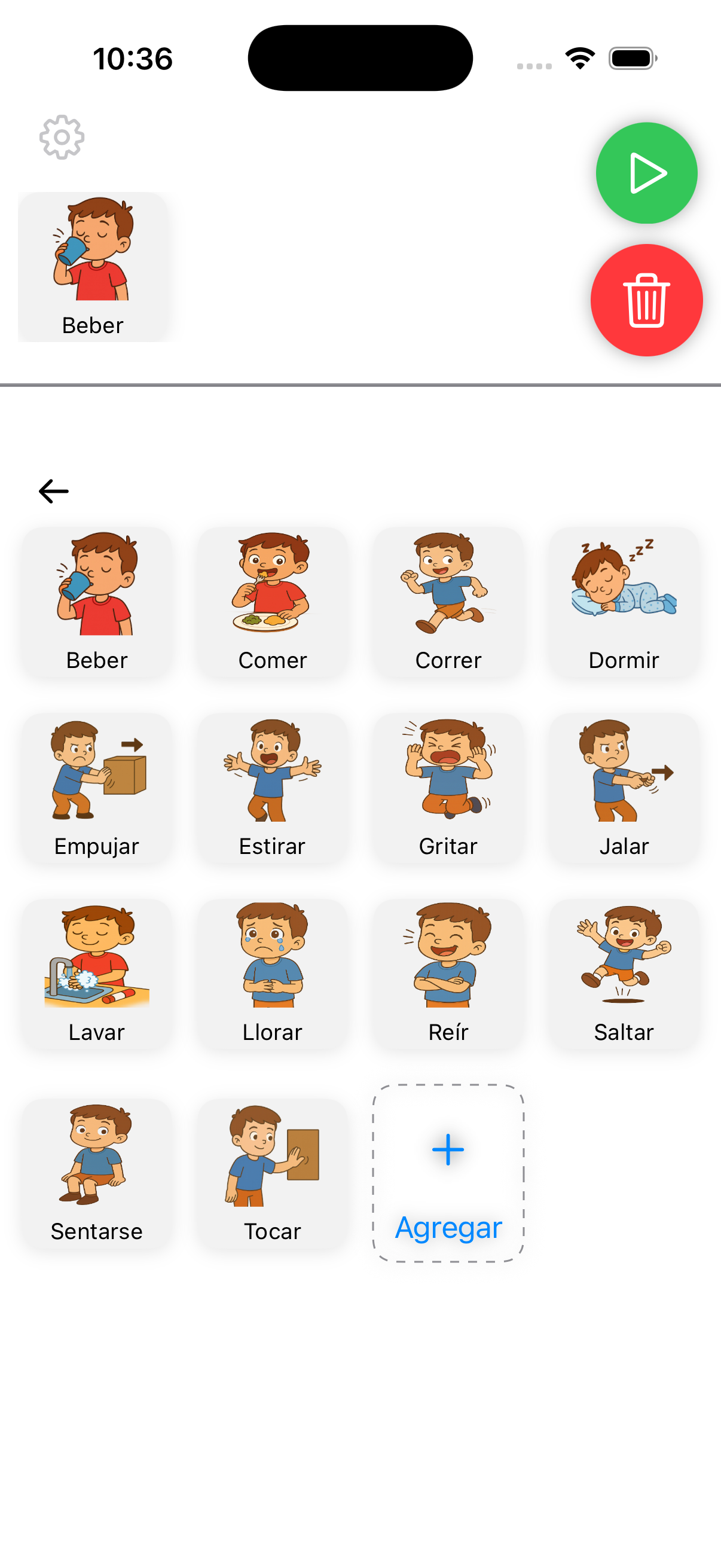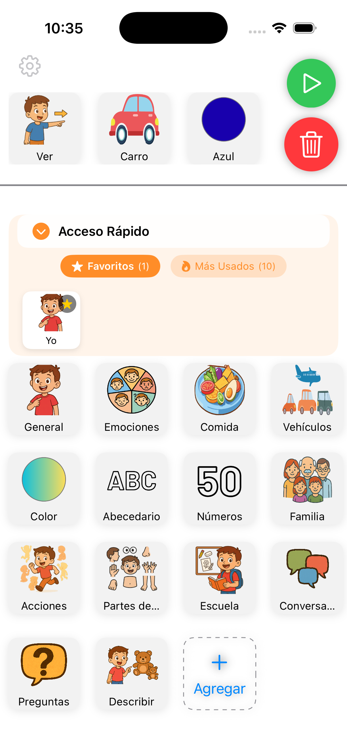 Interfaz limpia, sin distracciones y pensada para niños con diferentes niveles de comunicación.